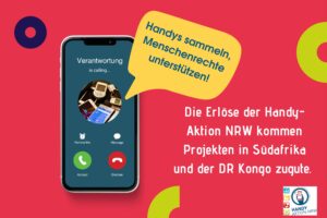 Endlich wieder Platz in der Schublade: Bei uns können ab sofort ausgediente Mobiltelefone abgegeben werden. Wir beteiligen uns gemeinsam an der Handy-Aktion NRW. Im Recycling der Mobiltelefone werden kostbare Rohstoffe zurückgewonnen. Die Erlöse kommen Menschenrechtsprojekten zugute.